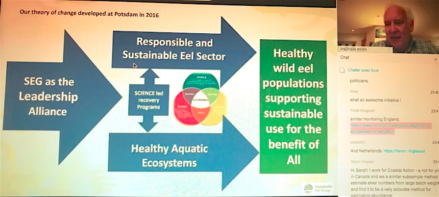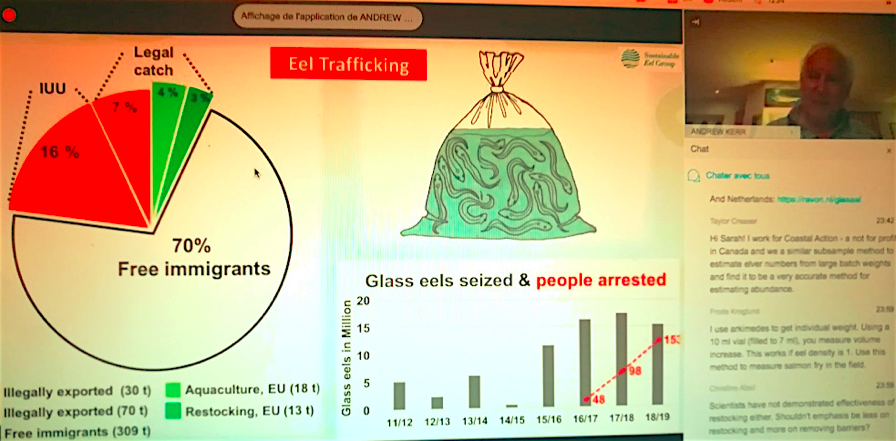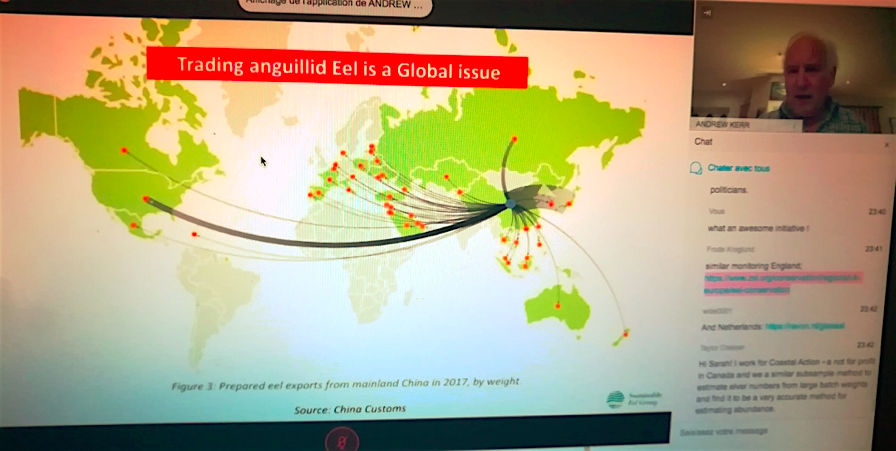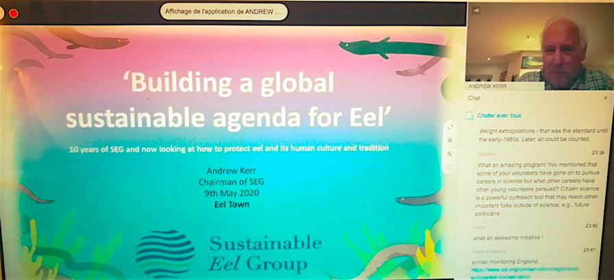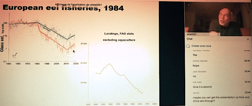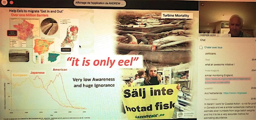 Durant le confinement, la première conférence d’Eel Town à laquelle j’y ai assisté a réuni les experts des anguilles en visio le 9 mai 2020 !