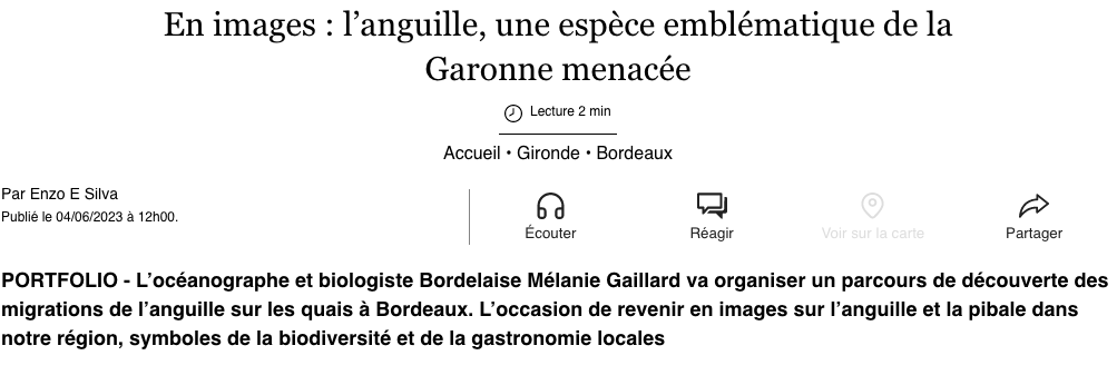 « Environnement : cette Bordelaise souhaite que l’anguille de la Garonne redevienne un symbole local »